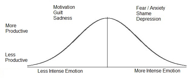Often emotions work in intensity on a spectrum from productive to counterproductive, like a bell curve.